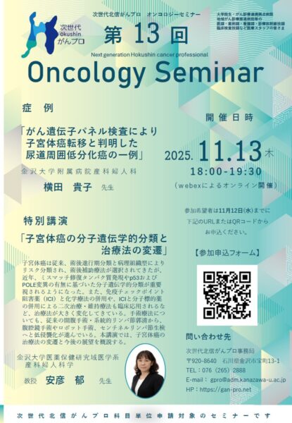 【11月13日開催】次世代北信がんプロ 第13回 オンコロジーセミナーを開催します。