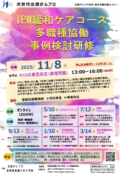 【11月8日開催】次世代北信がんプロ 第4回多職種協働事例検討研修を開催します