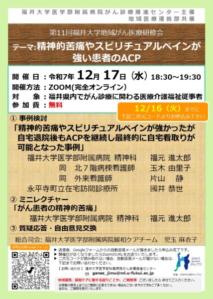 【12月17日開催】第11回福井大学地域がん医療研修会を開催します。