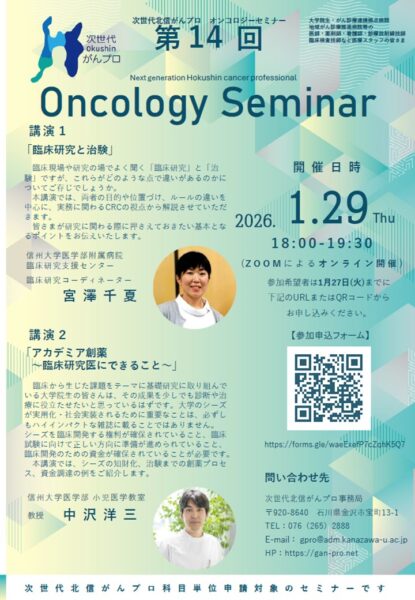 【1月29日開催】次世代北信がんプロ 第14回 オンコロジーセミナーを開催します。