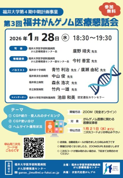 【1月28日開催】第3回福井がんゲノム医療懇話会を開催します